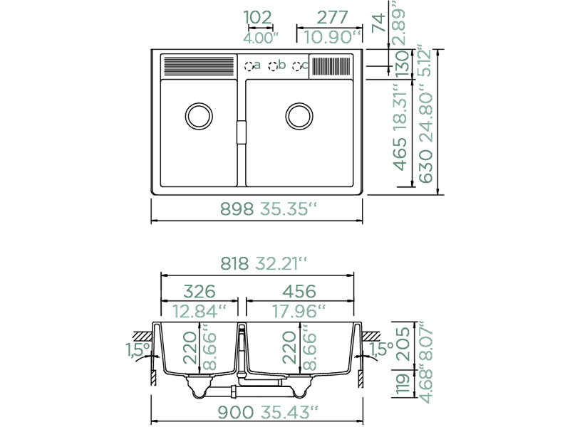 Vrsta sudopera 2 korita Dimenzije 456 x 465 x 220 mm / 326 x 465 x 220 mm Dubina korita 220 mm Za element 900 mm Boja Crna Materijal Cristadur Način ugradnje Iznad radne ploče Jedinica mjere kom Proizvođač Schock